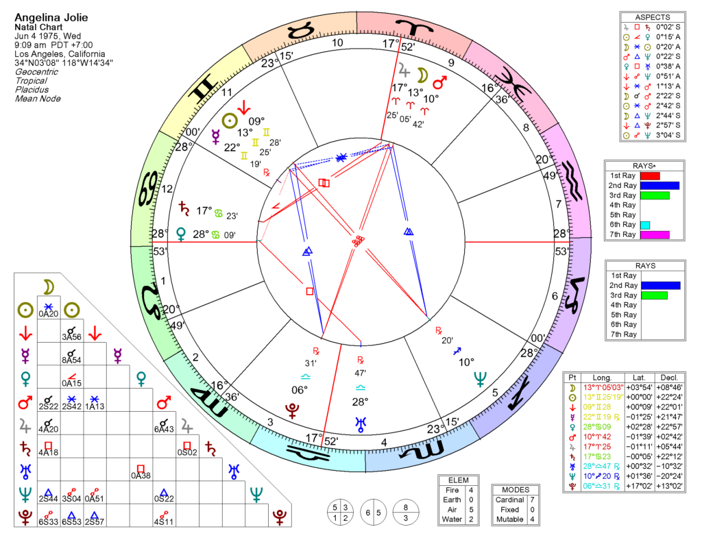 Jolie’s Sun is in Gemini, the Moon is in Aries, the ascendant sign is Cancer.