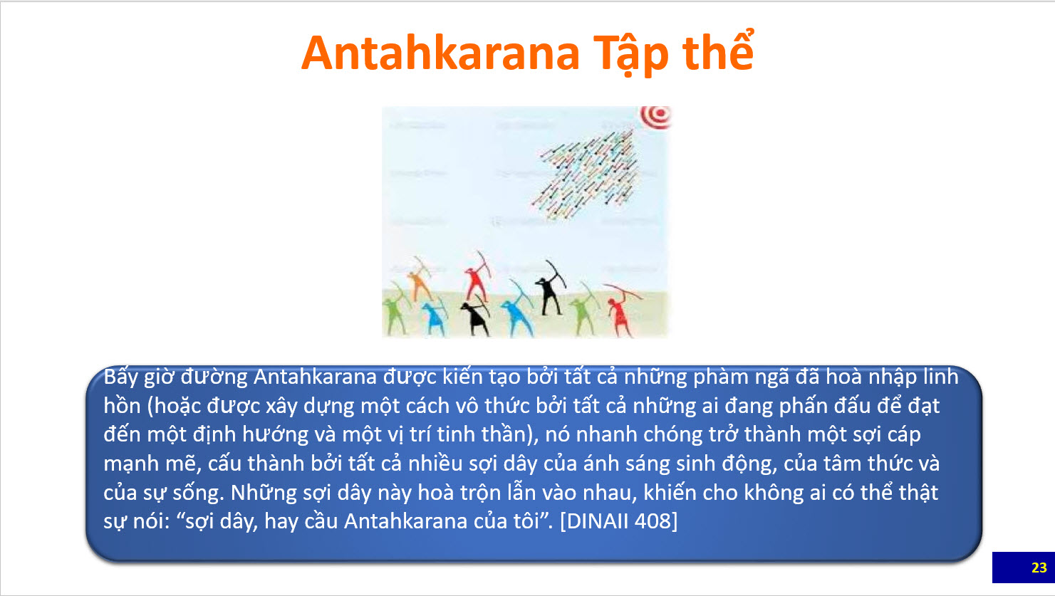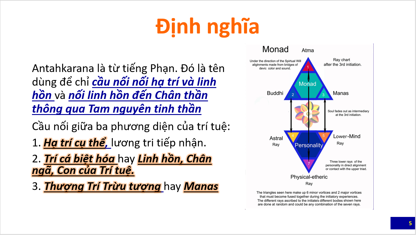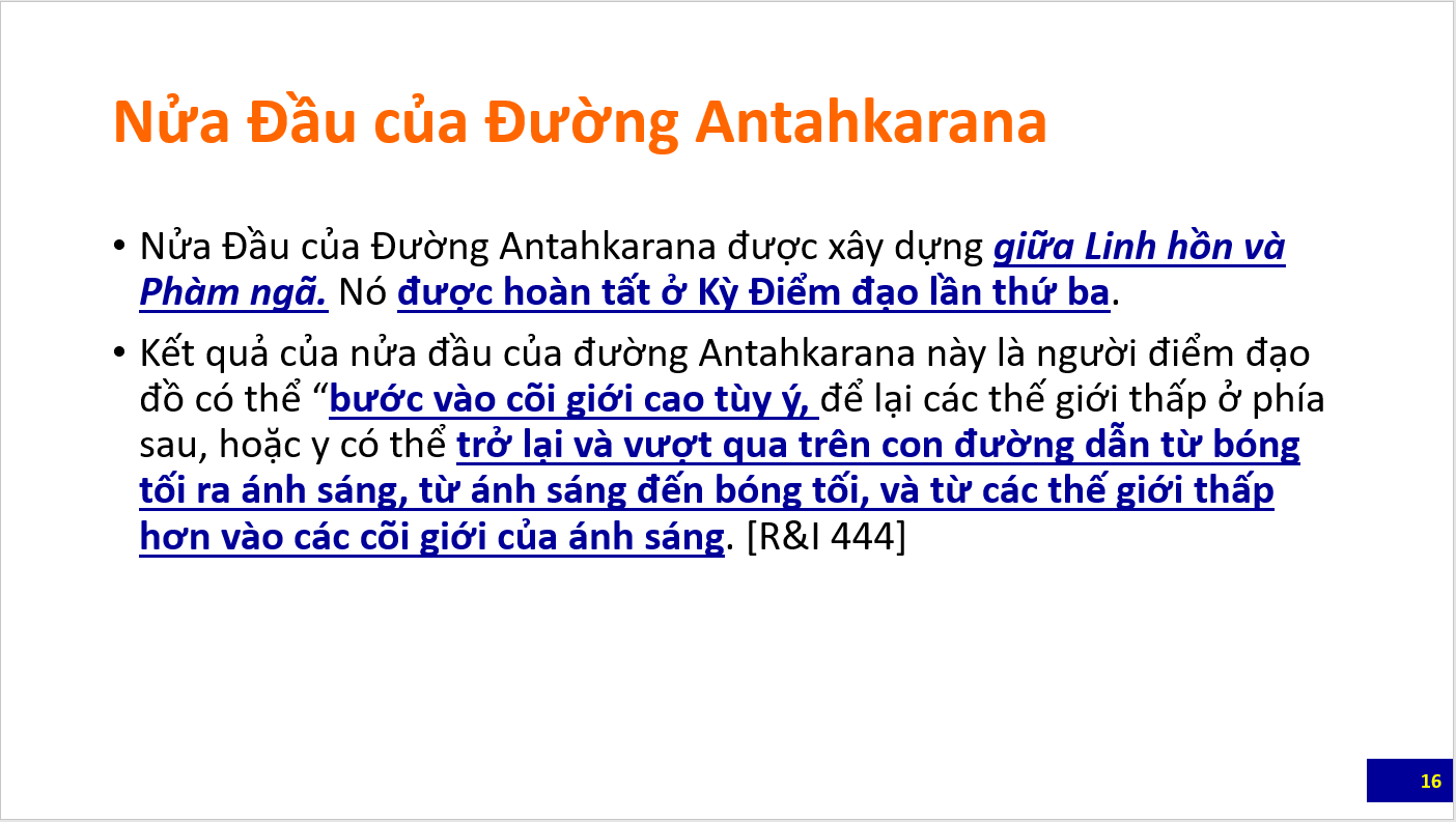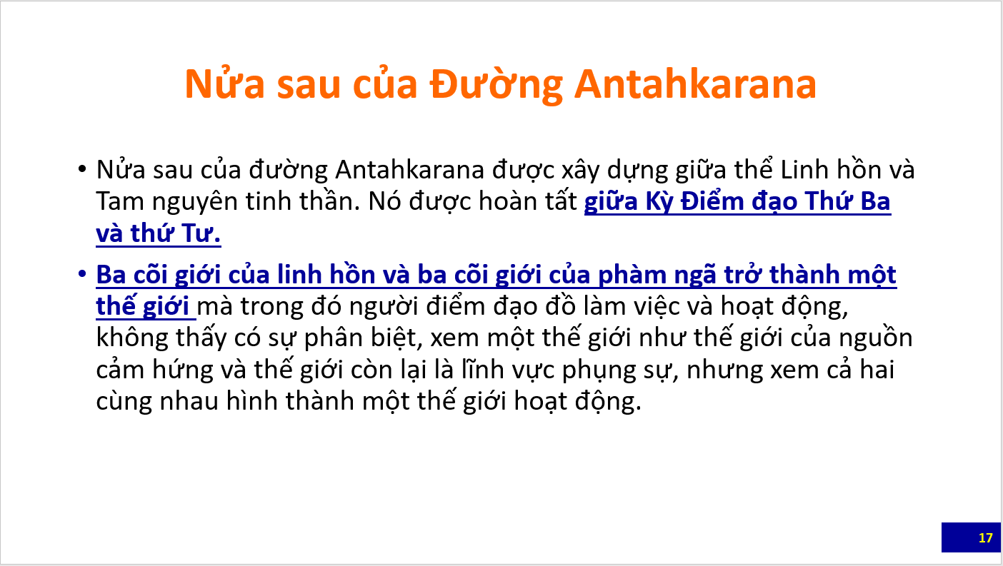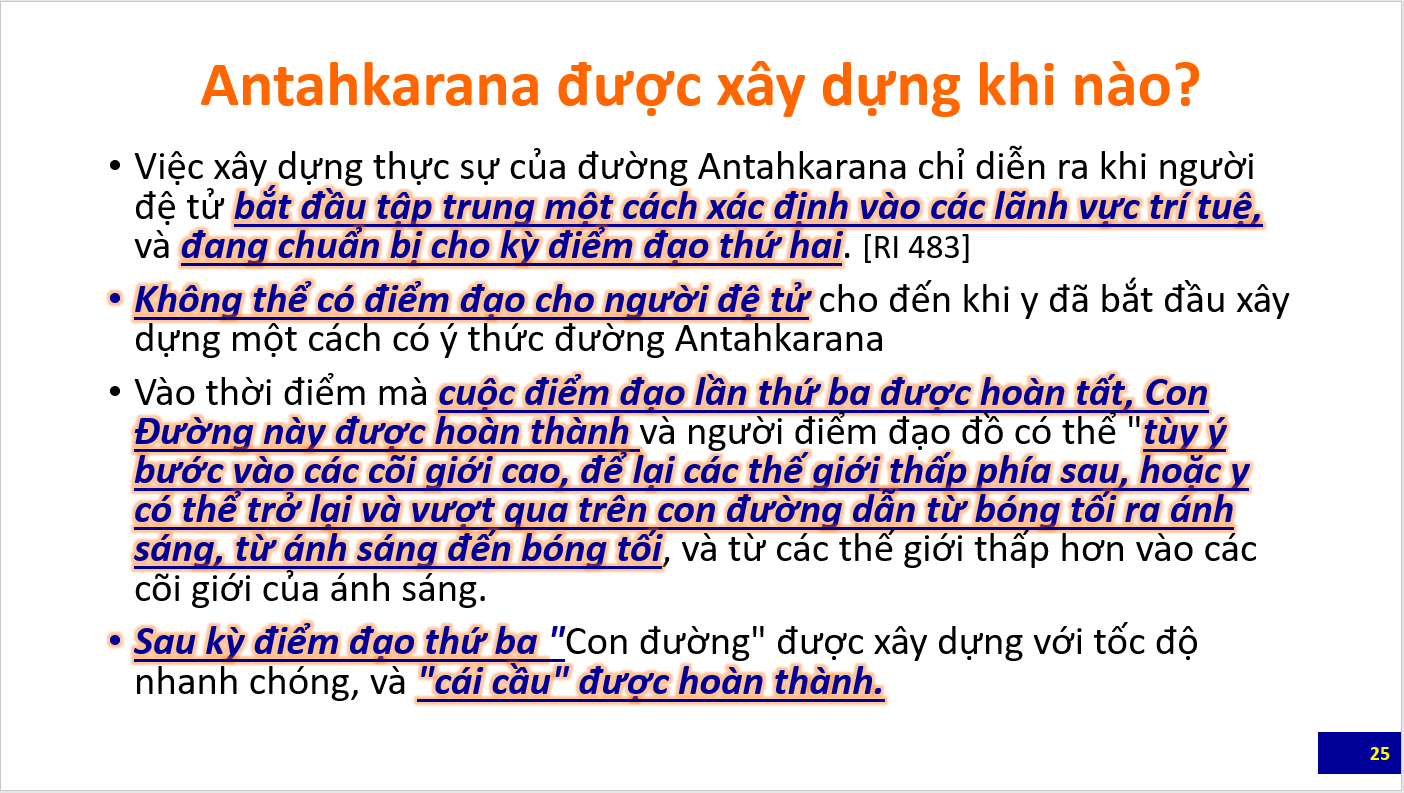 Bài tổng quan đầu tiên là các slide giới thiệu các nét chính về Khoa học của đường Antahkarana do Bà Eva Smith, Giảng Viên của Trường Morya Federation trình bày trong webinar dành cho học viên và công chúng. Các bạn cũng nên xem lại các bài trước đây về Antahkarana để có thể hiểu các slide này. Sau bài này sẽ là loạt bài giảng luận về Antahkarana trích trong The Ray and the Inititaions