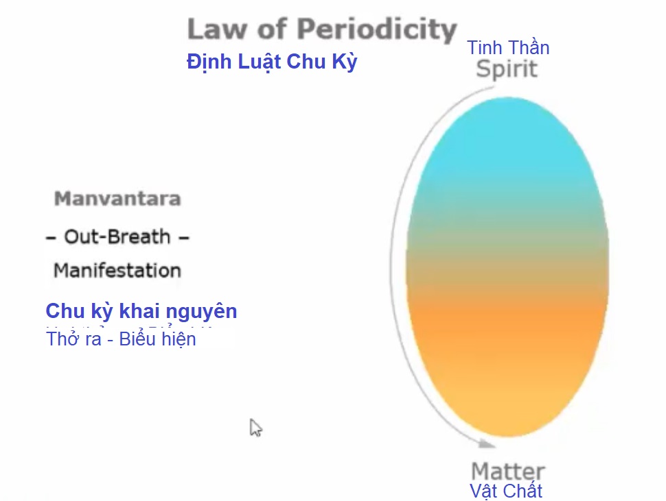 Có những chu kỳ biểu hiện và thu rút, thành trụ và hoại không. Tôi muốn đưa các bạn vào một bức tranh lớn, vào vũ trụ. Triết học nói rằng Thượng Đế, hay sự sống vĩ đại biểu hiện chính mình trong vũ trụ qua hơi thở ra vĩ đại (a great outbreath). Hơi thở ra đó là khuynh hướng lâm phàm nhập thế.